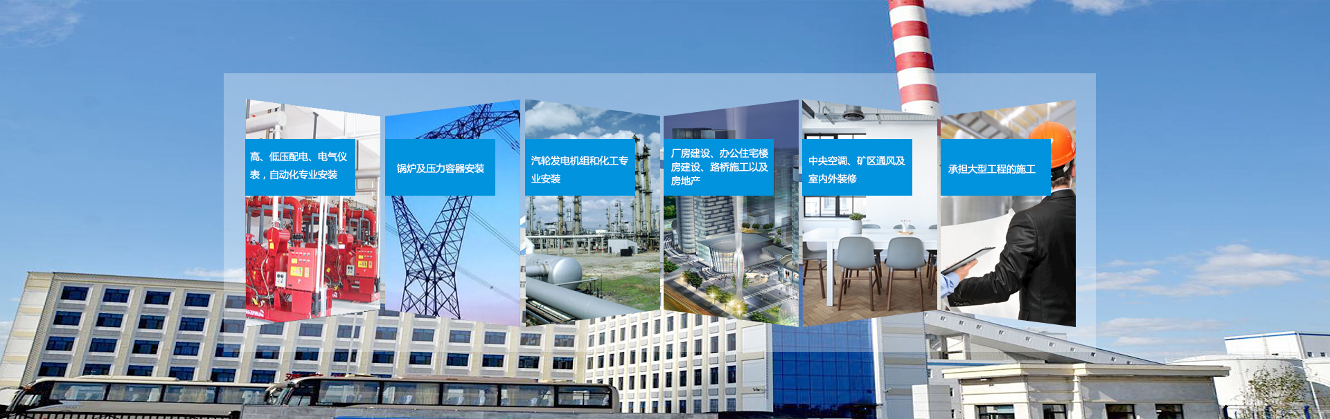 公司以工業、電力、化工安裝為主 下設六個大項目部及兩個獨立子公司